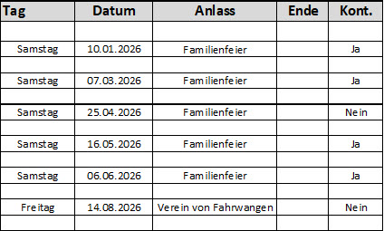 Für das Jahr 2026 sind genügend Termine verfügbar.